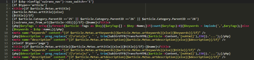 因为主题有两个内容页模板,我们需要根据不同的栏目,展示不同的Title,便于SEO